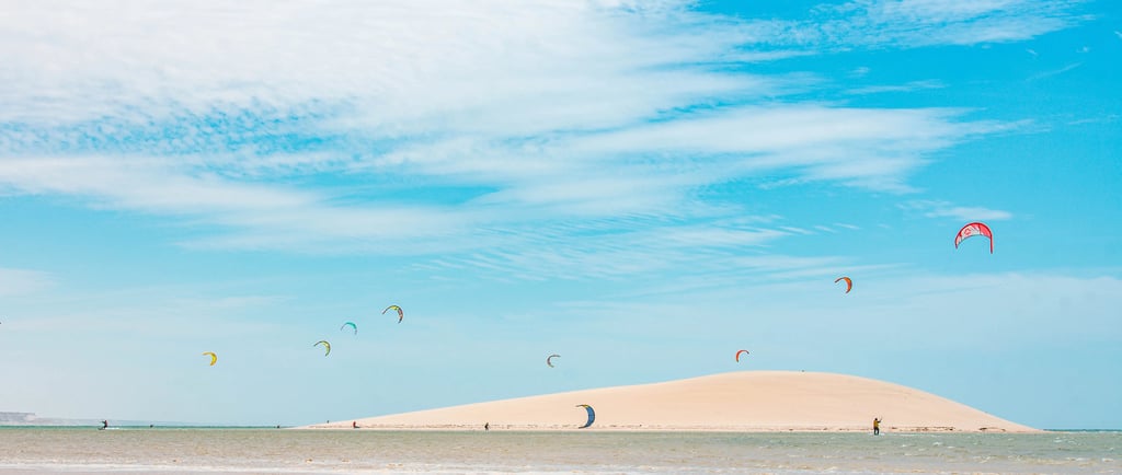 Watching the kites dance around the dune is an essential part of the Dakhla experience—a living artwork painted in motion and color.